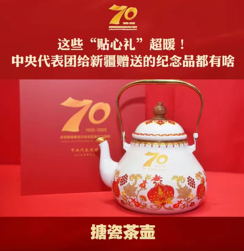 搪瓷茶壶-中央代表团向新疆维吾尔自治区赠送的纪念品